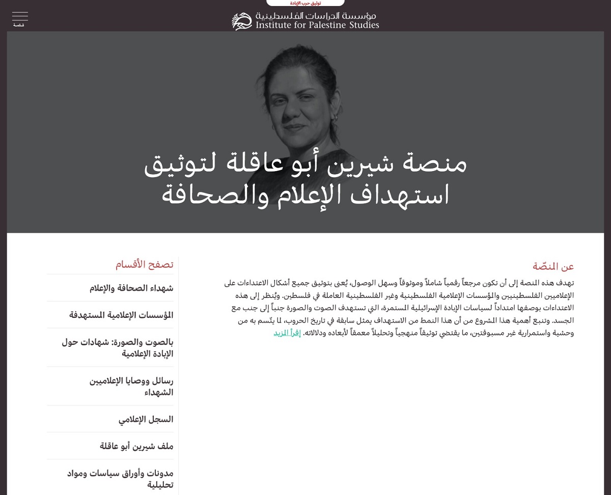 أطلقت مؤسّسة الدراسات الفلسطينية مبادرةً نوعية تحمل اسم “منصة شيرين أبو عاقلة لتوثيق استهداف الصحافة والإعلام”، لتكون مرجعًا رقميًا شاملًا يرصُدُ بدقّة جميع الانتهاكات التي تطالُ الصحافيين الفلسطينيين والمؤسّسات الإعلامية العاملة في فلسطين. وتأتي هذه الخطوة في مرحلةٍ تُعَدُّ الأكثر دموية في تاريخ الصحافة الفلسطينية، إذ تحوّلَ استهدافُ الإعلاميين إلى جُزءٍ بُنيوي من منظومة الإبادة الإسرائيلية منذ السابع من تشرين الأول (أكتوبر) 2023، في محاولةٍ لإسكاتِ الصوت والصورة تمامًا كما تُستَهدَفُ الأجساد.