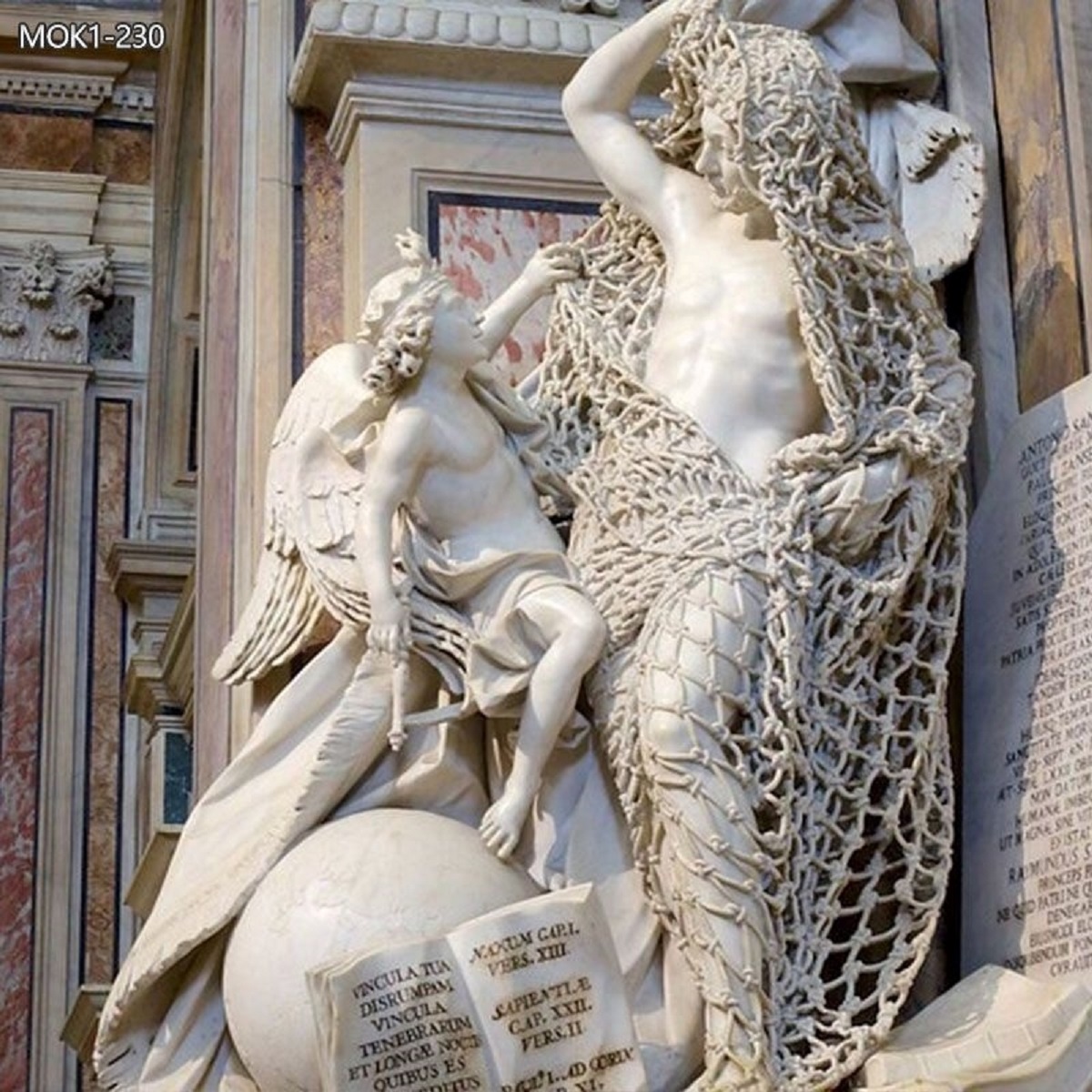 التمثال يجسِّد مشهدًا هو في الوقت ذاته ديني ومجازي. فيه موضوعان: الملاك والصيَّاد، الملاك مرتكز إِلى كرة كبيرة، يحرِّر الصيَّاد من حبالِ شبكةٍ بحرية ملفلفة شديدة التعقيد.