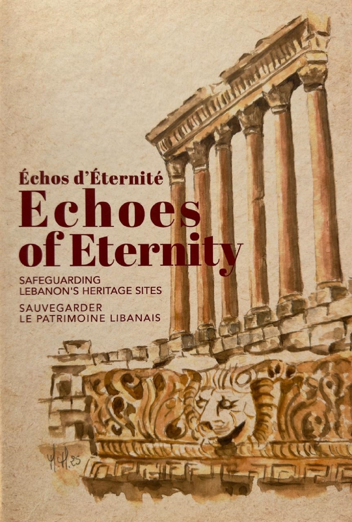 يندهُني عنوانُه الثَانويُّ: “حفاظًا على مواقع التُراث اللبناني”، وغلافُهُ بالستة الأَعمدة: بعلبكًا بريشة ماريِّا ماغْرو. أَفتحُهُ بتُؤَدة: “منشورات جمعية الأَرز الأَخضر-لبنان”. وفي إِهداء رئيسة الجمعية الكاتبة باسكال الشويري سعد: “إِلى حرَّاس الذاكرةِ وتراثِ لبنان، الأَبطال العاملين في الظلِّ بصمت. إِخلاصُكم الراسخ يحفَظ تاريخنا ويحافظ على ثقافتنا. هذا الكتابُ بادرةُ وفاءٍ لجهودكم العالية وتراثكم الحيّ أَبدًا”.