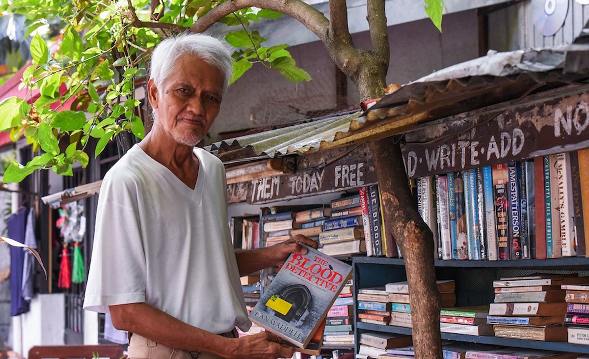 عند ناصية بارزة وسط شارع بالاغْتاسْ، في حيّ لاپاز من مدينة ماكاتي (إِحدى ضواحي العاصمة الفيليبينية مانيلَّا)، بيتٌ صار اسمه “مكتبة مانغ ماني العامة”. يفتح 24 ساعة في سبعة أَيام الأُسبوع. يجد فيه قاصدُه كتبًا مدرسية وروايات وقواميس وموسوعات، وسائر ما يتعلَّق بلوازم القراءة وأَدوات الكتابة.