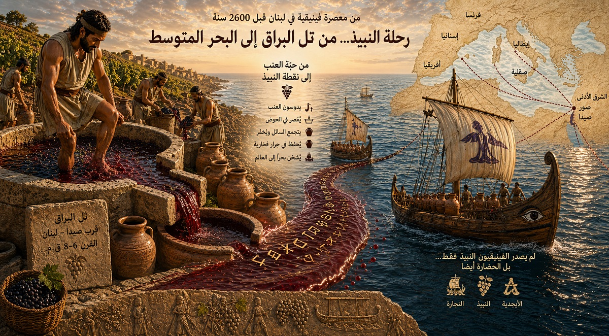 بعد ثلاثيتي في “أَسواق العرب” (الأُسبوع الماضي والذي قبْله) عن تاريخ الفينيقيين وأُصولهم وتراثهم، ورَد معظم صورها ونصوصها في “الناشيونال جيوغرافيك” (عدَدها المزدوج (تموز-آب/يوليو/أُغسطس 2025)، وخلال قراءَتي عددَها أَيلول/سبتمبر 2020، وجدتُ مقالًا علْميًّا موثَّقًا عن أَقدم معصرة عنب في لبنان قبل 2600 سنة في تل البراق (قرب صيدا – جنوب لبنان) كان الفينيقيون يُصنِّعون فيها النبيذ، ويحملونه إِلى سفنهم التجارية، يُبْحرون به إِلى بلدان البحر الأَبيض المتوسط.
